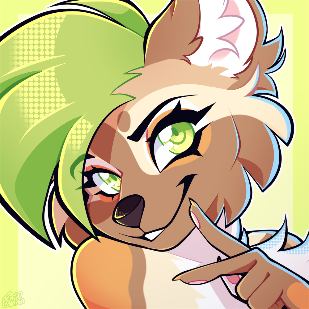 A headshot/face close-up of your character with your choice of expression on a simple background. BG colors is chosen carefully to match with your character.